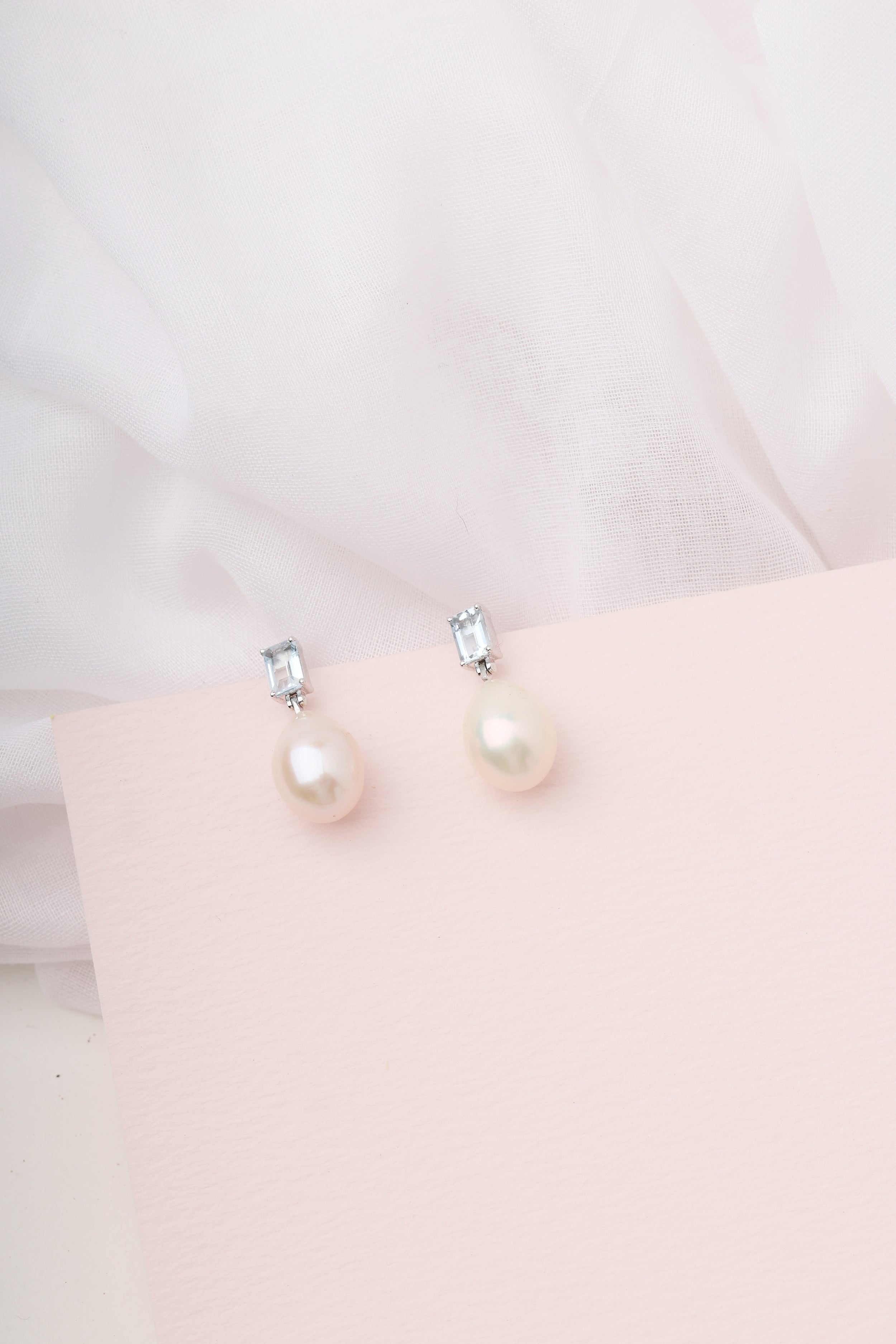 - Aquamarine & Pearl 14k Gold Earrings – Ocean-inspired serenity with aquamarine drops and classic pearls.