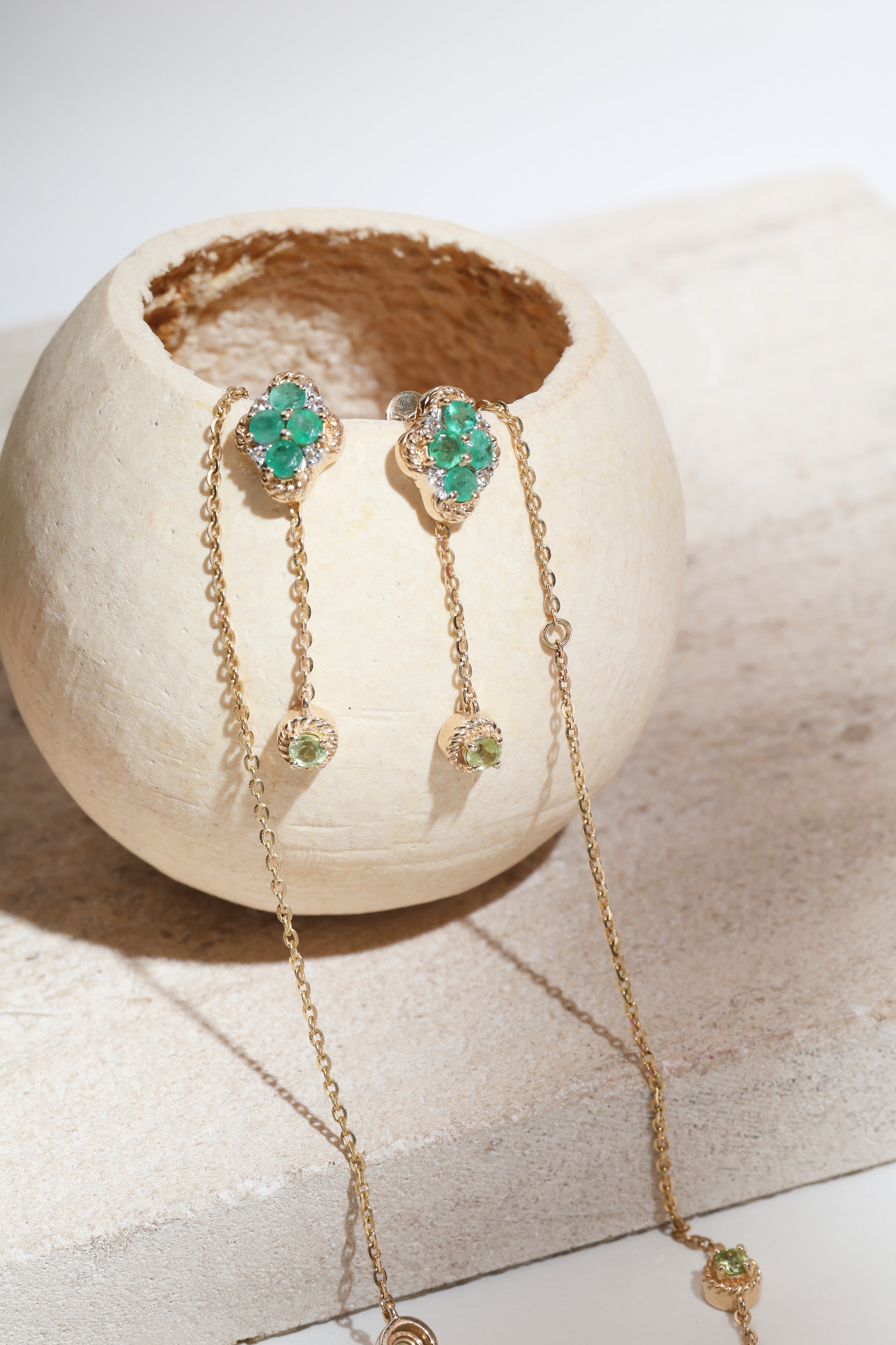 - Dainty Emerald 14k Gold Earrings – Minimal yet striking, dainty emeralds set in lustrous 14k gold.