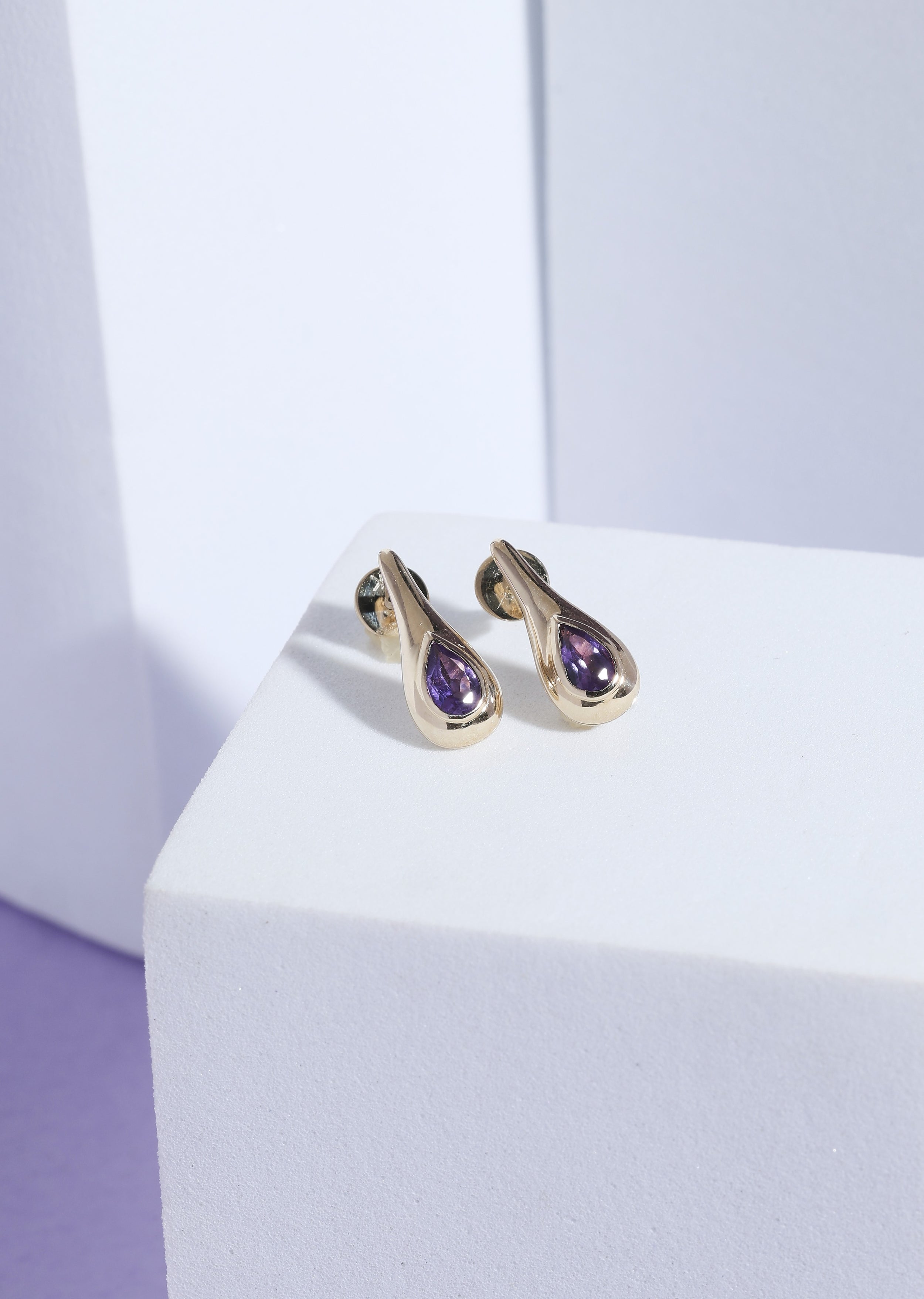 - Amethyst Drop 14k Gold Earrings – Elegant purple amethyst drops, adding a royal touch to daily wear.