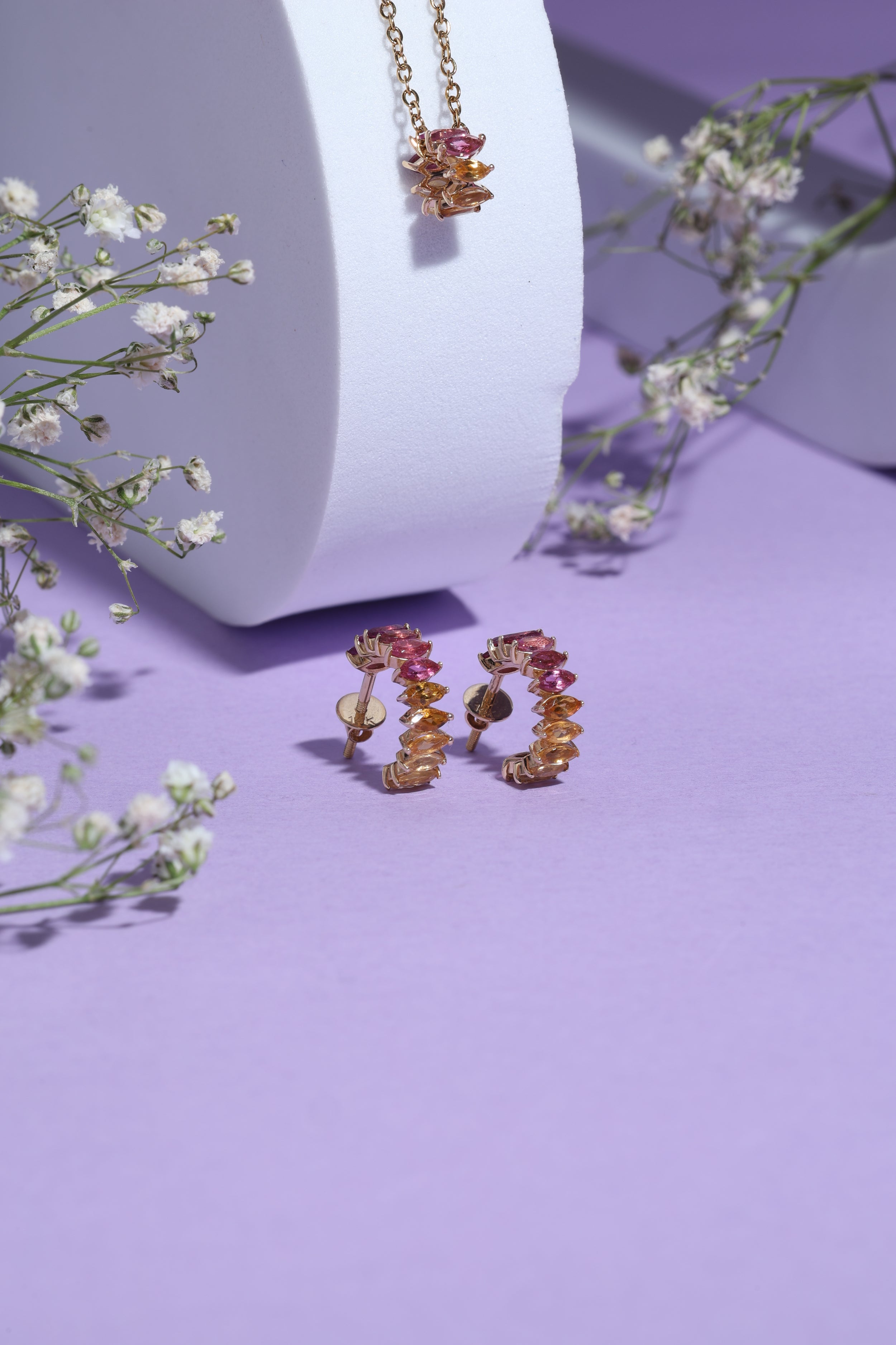 - Sunset Ombre Gemstone 14k Gold Hoop Earrings – Inspired by twilight skies, ombre gemstones meet modern gold hoops.