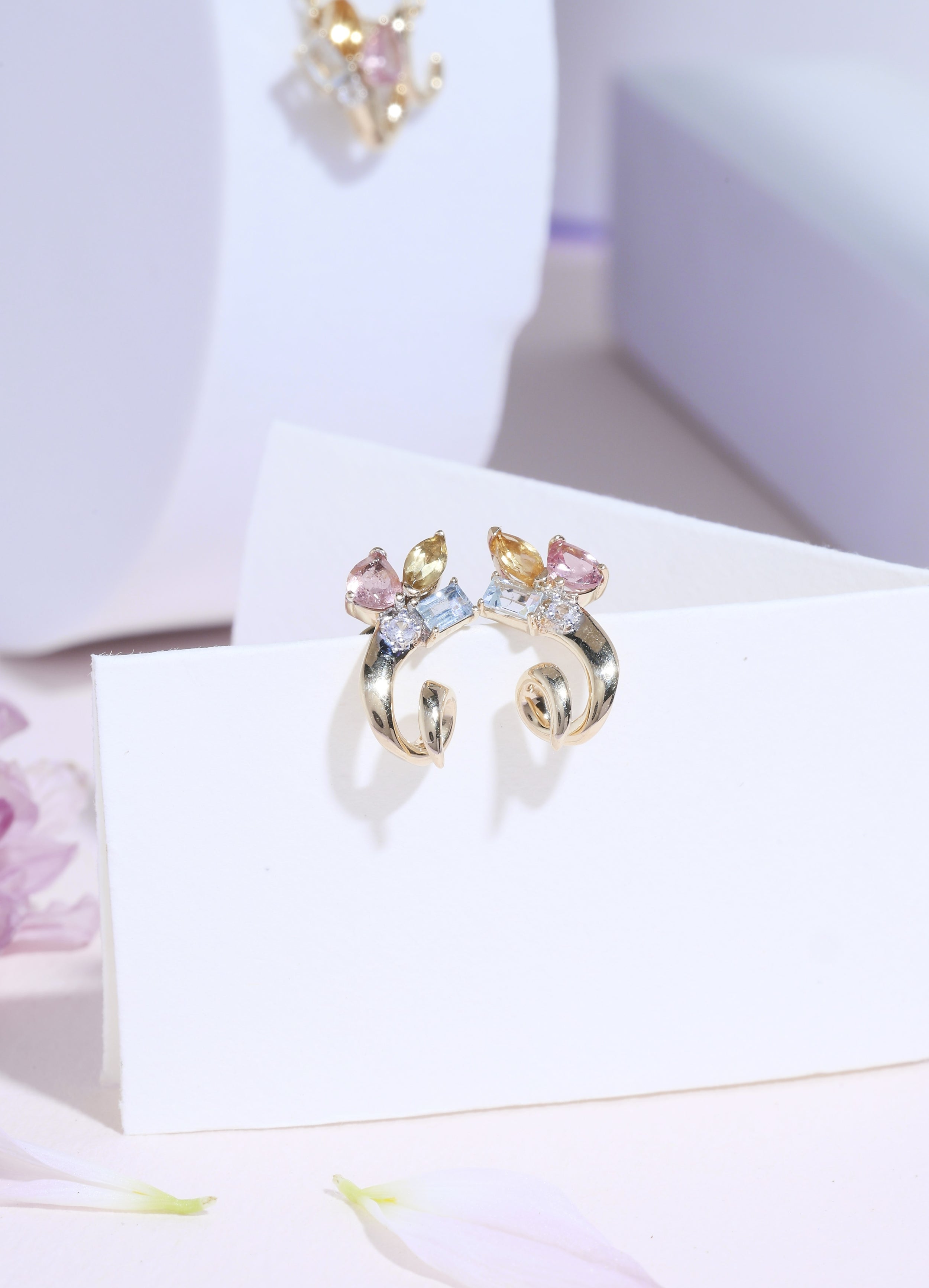 - Tri-Colour Gemstone 14k Gold Earrings – Playful and chic, crafted in three gemstone hues set in fine 14k gold.
