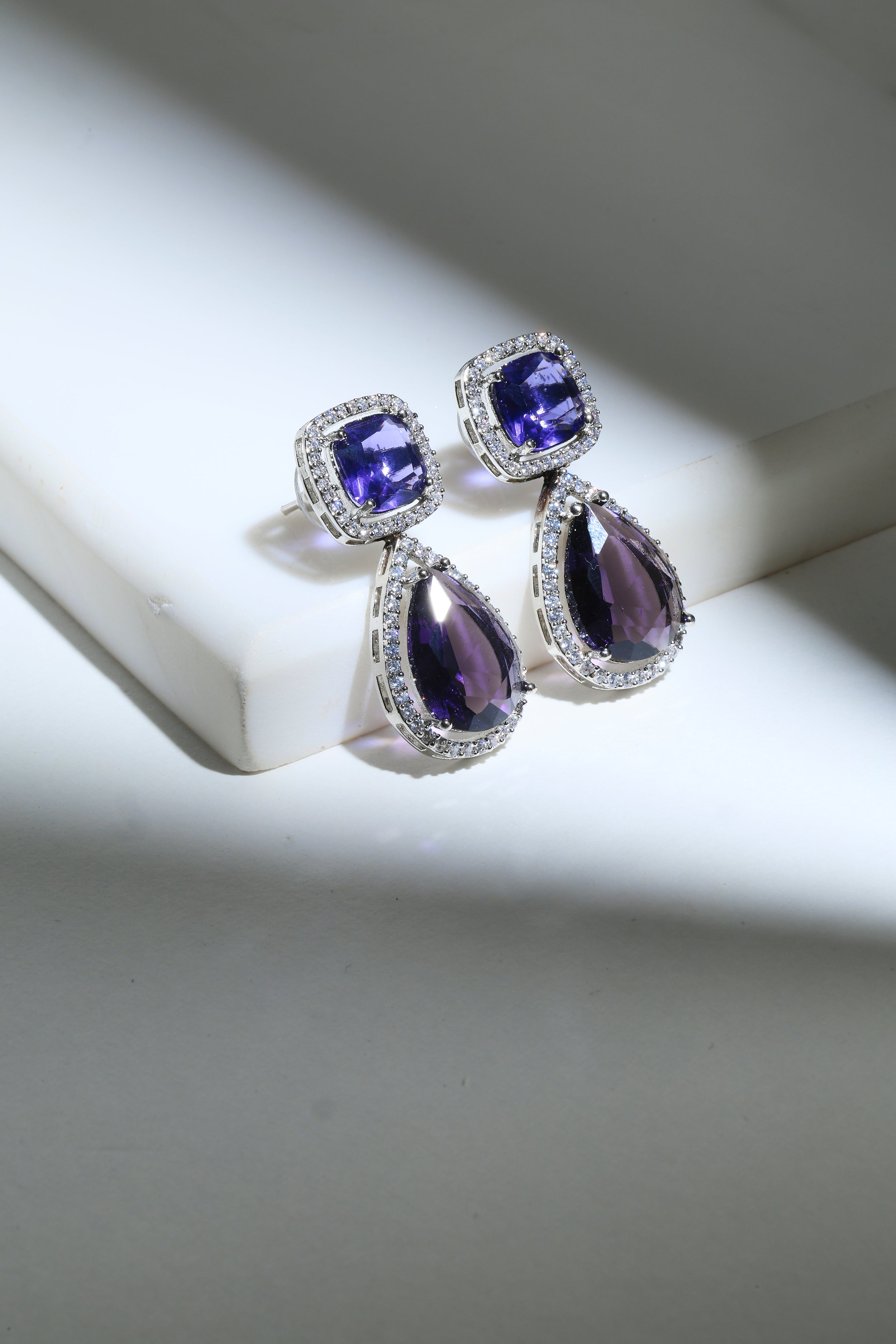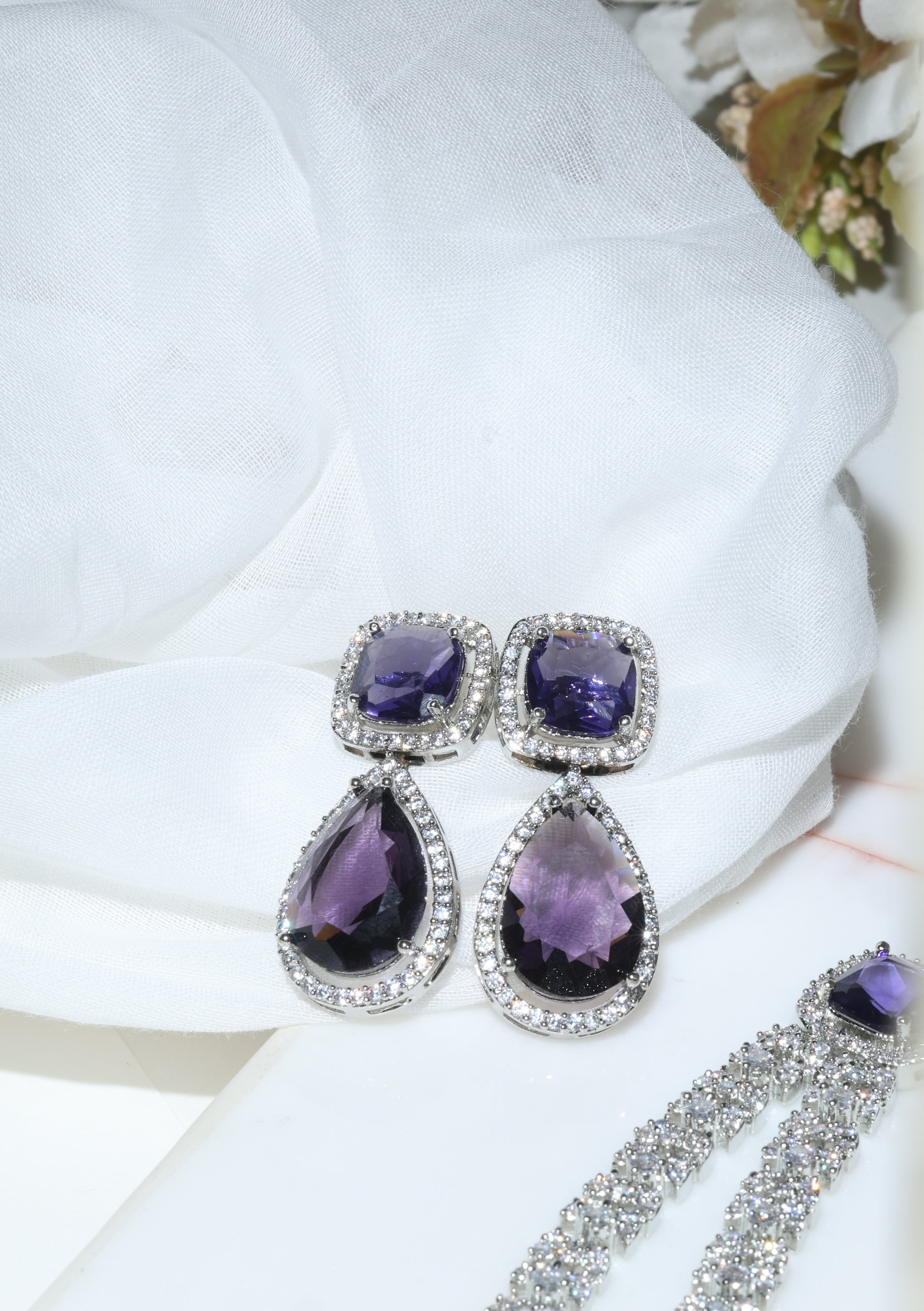 - Amethyst & Diamond Drop Earrings – Dramatic drops with the rich charm of amethyst and sparkling diamonds.