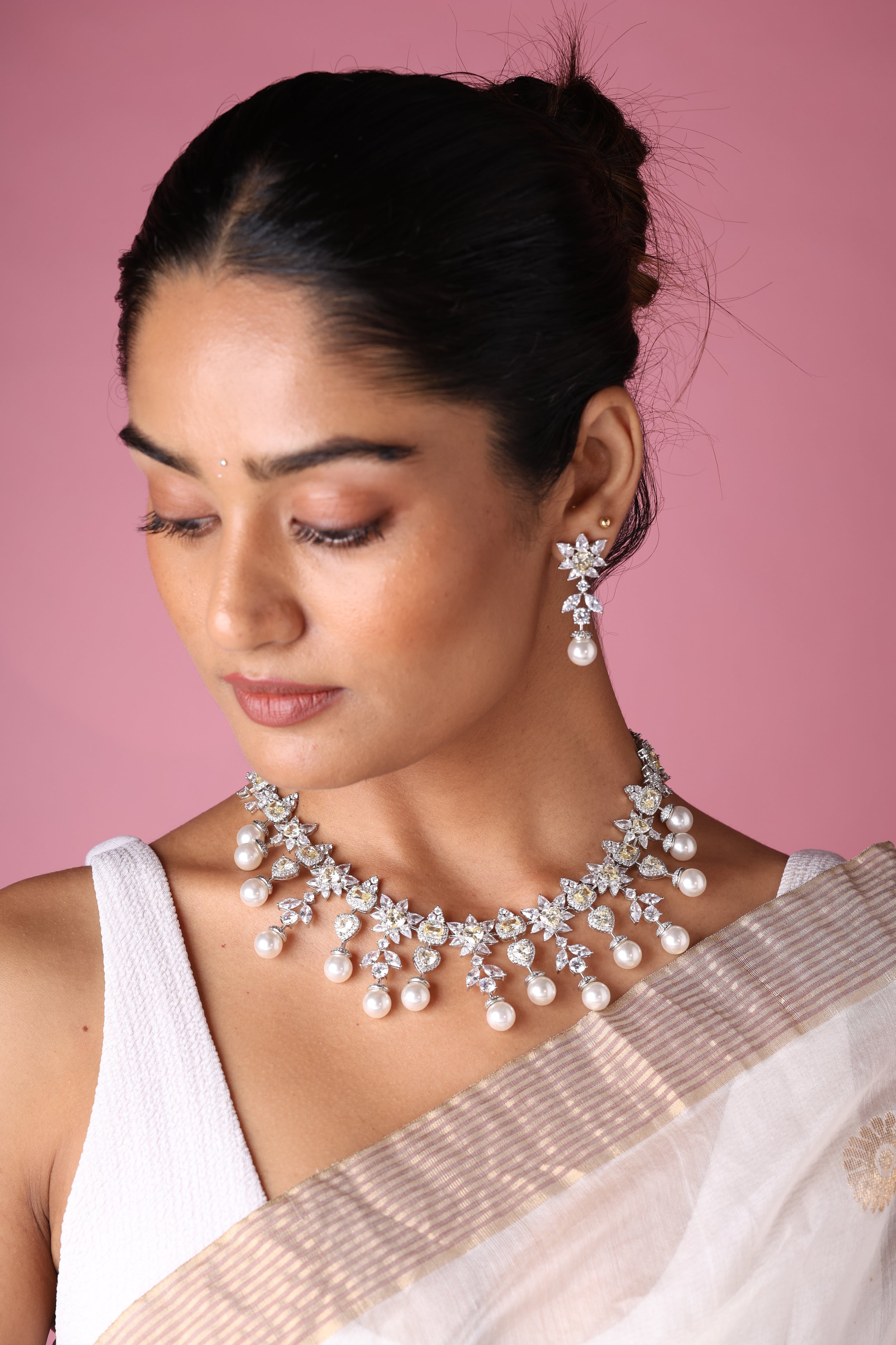 - Yellow Sapphire, Pearl & Diamond Earrings – A radiant fusion of sunshine yellow, creamy pearls, and sparkling diamonds for timeless elegance.