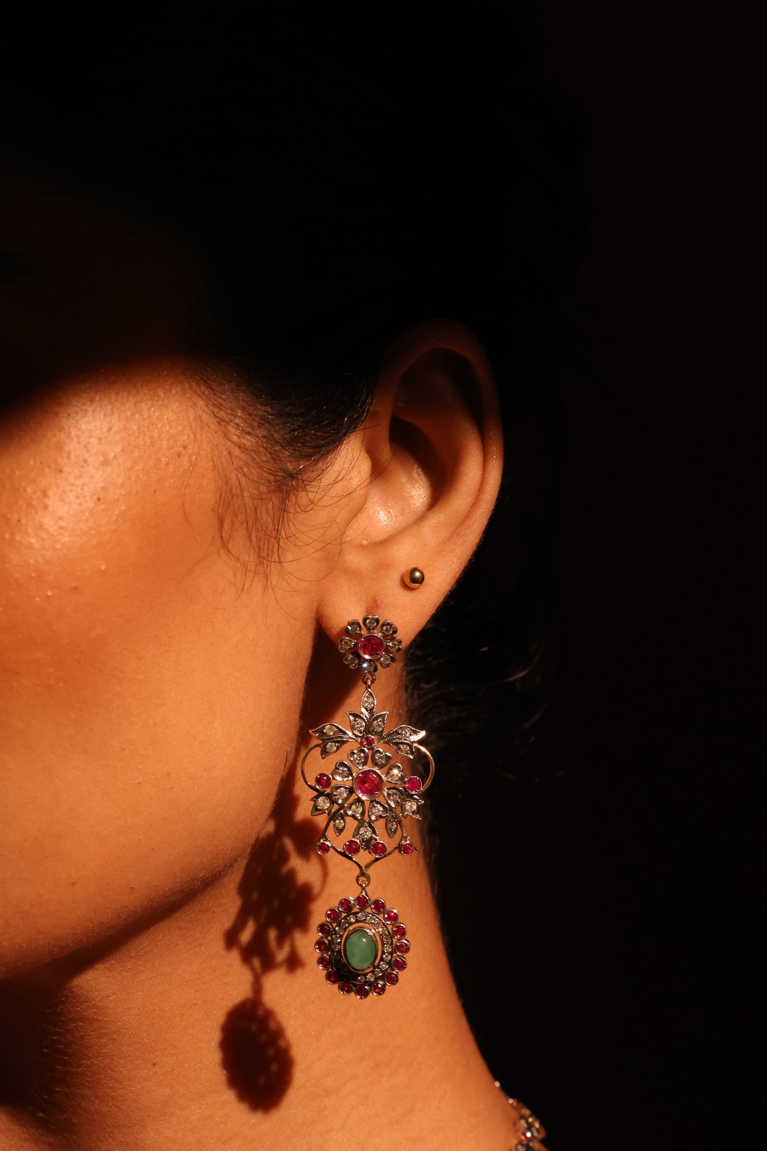 - Diamond & Gemstone Victorian Earrings – A regal Victorian-inspired fusion of diamonds and coloured gemstones.