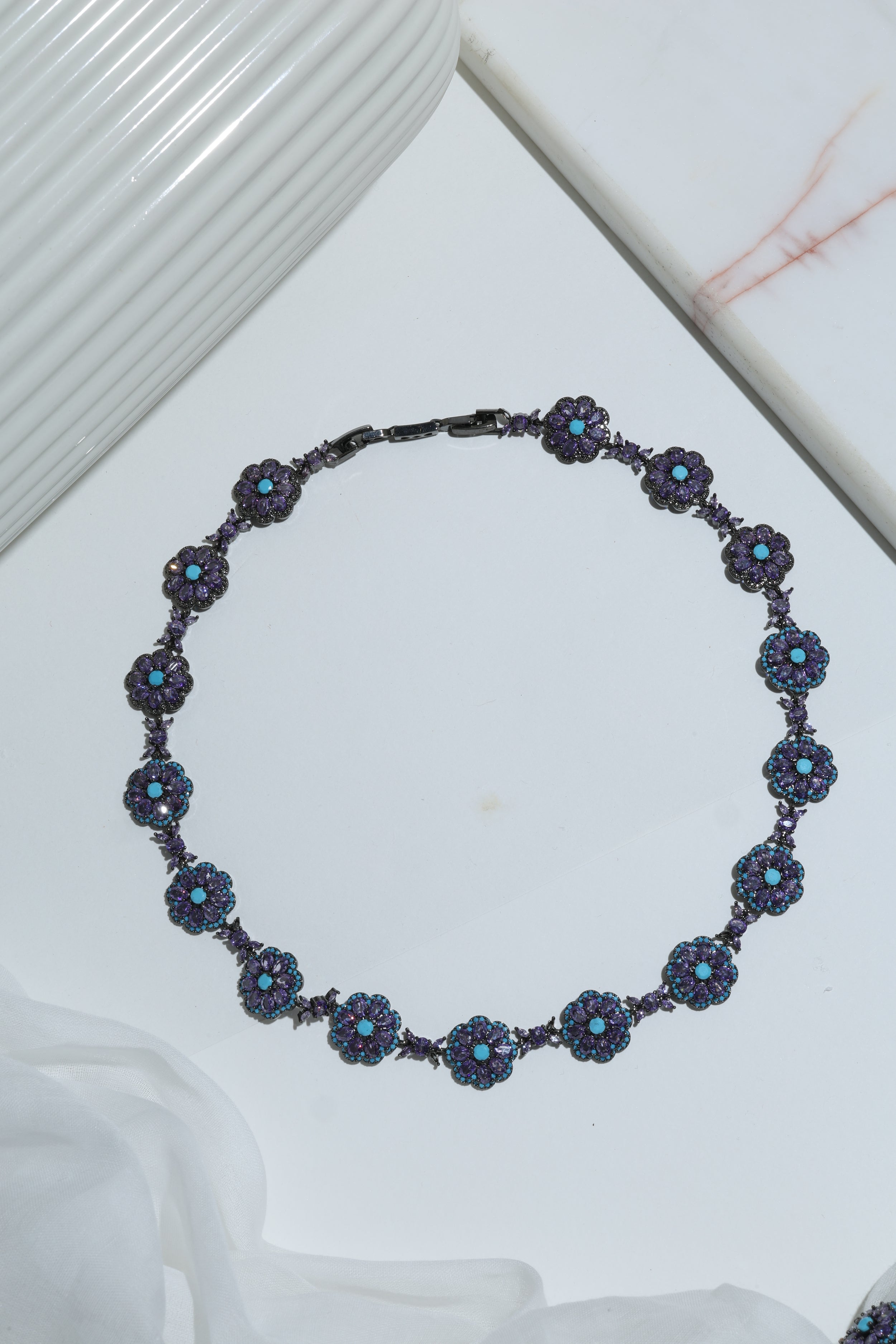 - Amethyst & Turquoise Black Rhodium Necklace – A striking contrast of amethyst and turquoise in dramatic black rhodium.