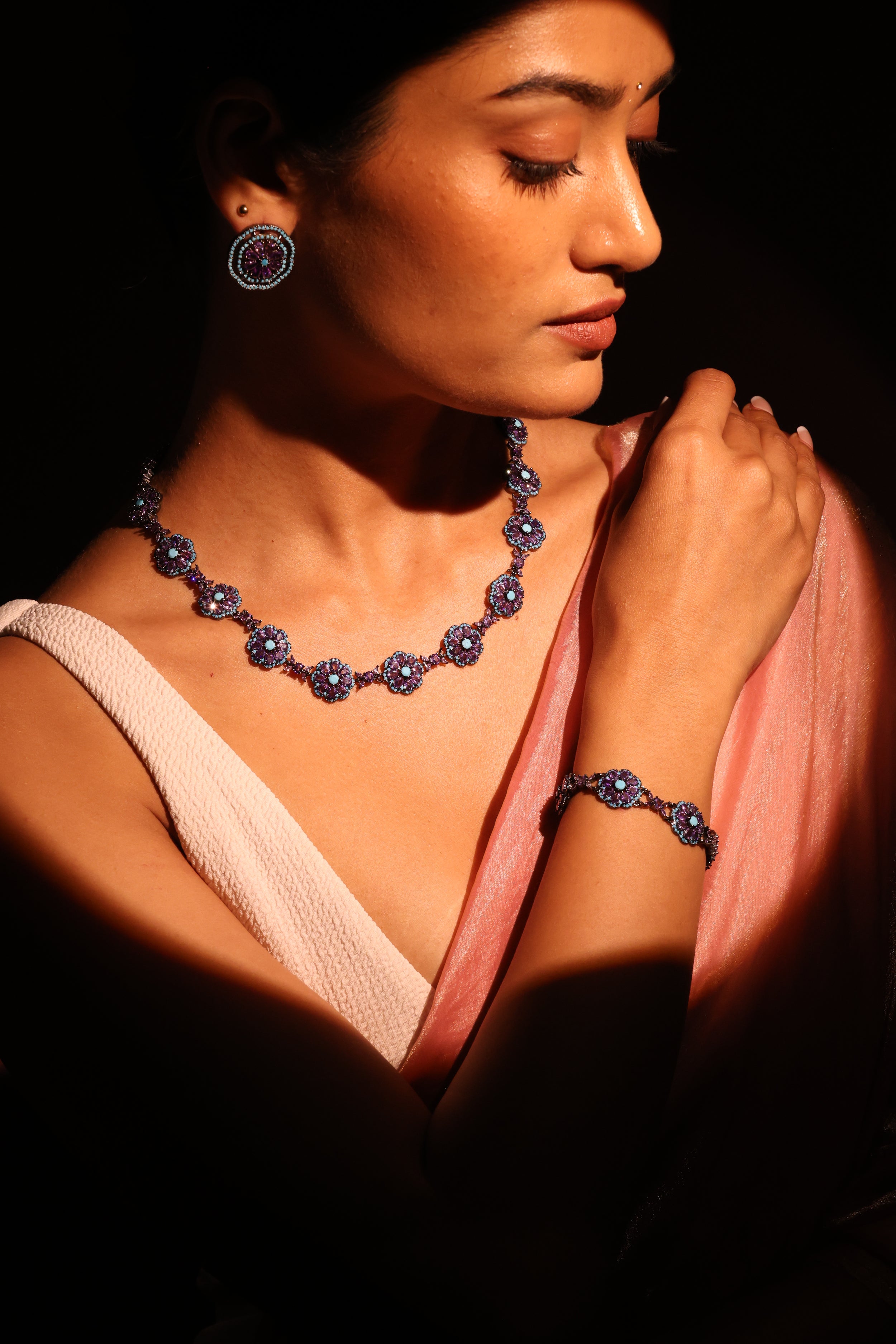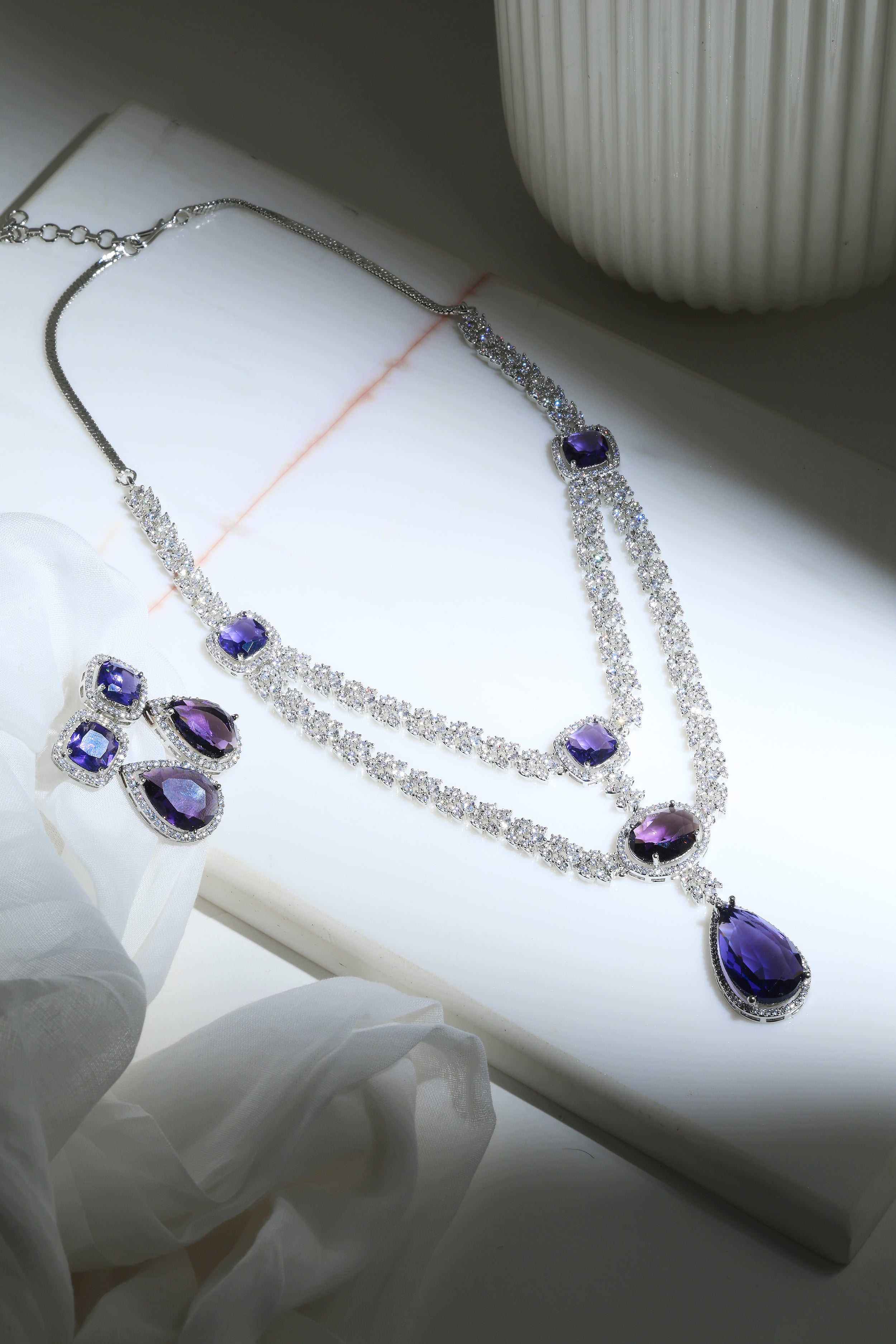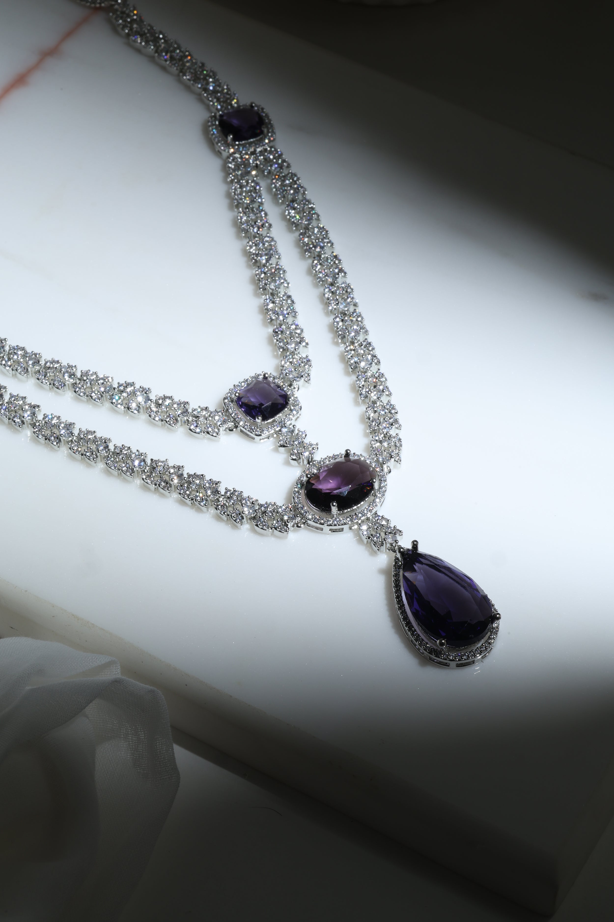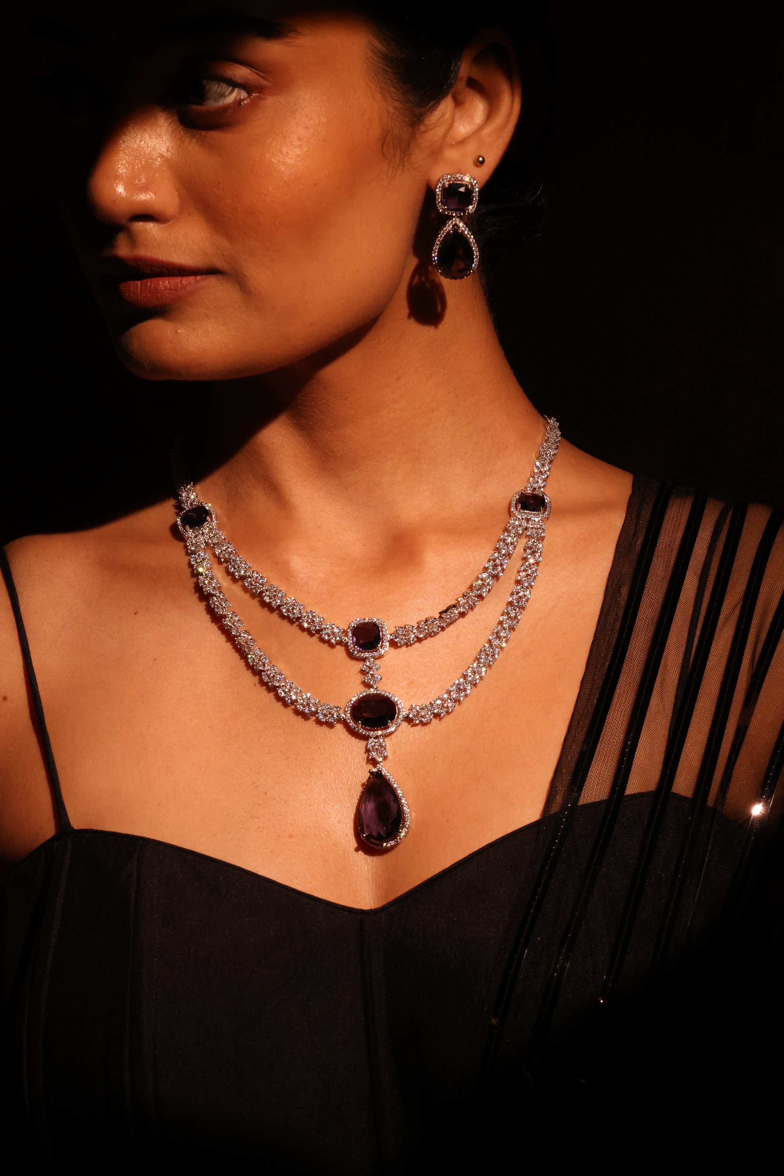 - Amethyst & Diamond Double Layer Bridal Necklace – Bridal grandeur in layered amethyst strands accentuated with sparkling diamonds.
