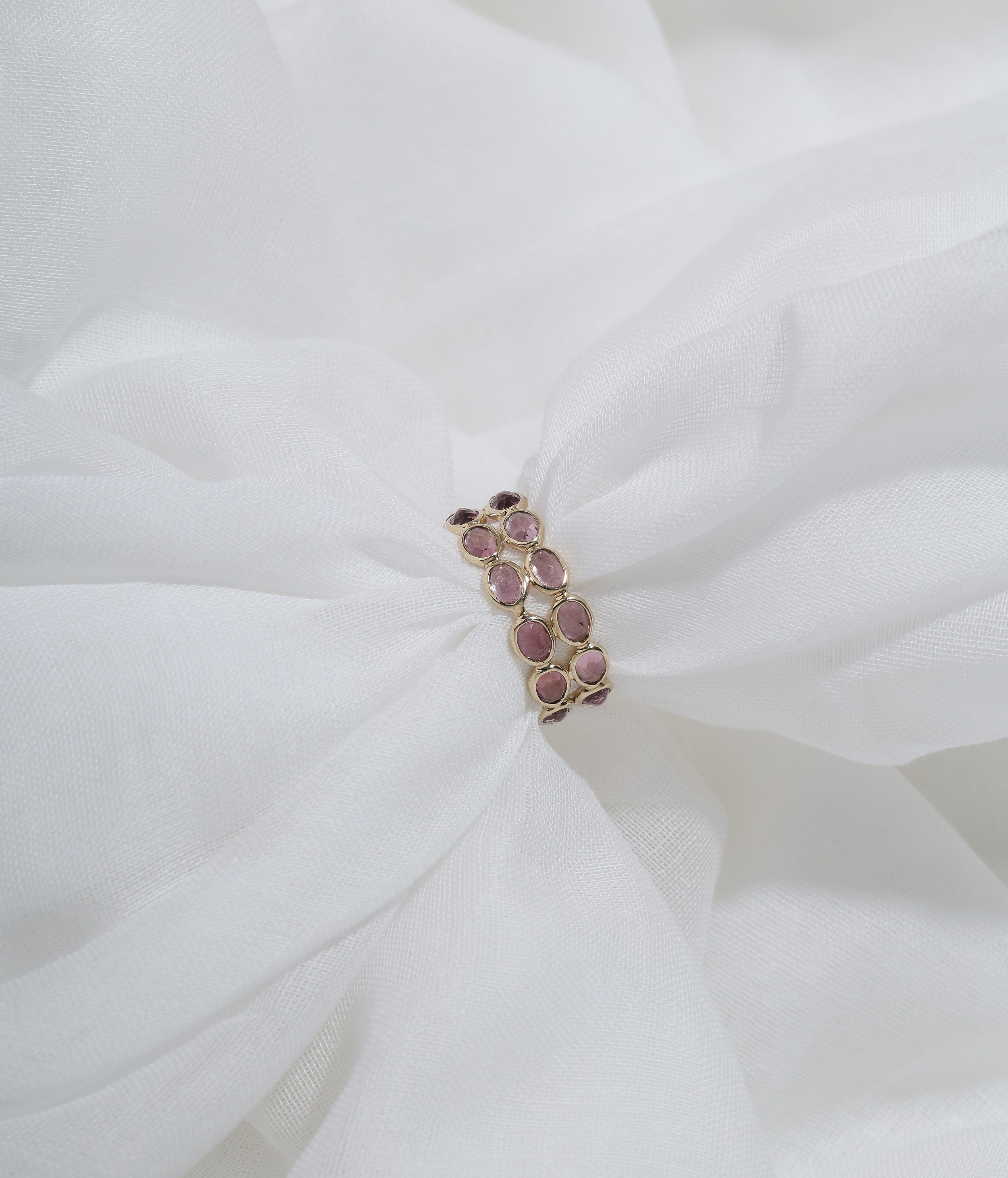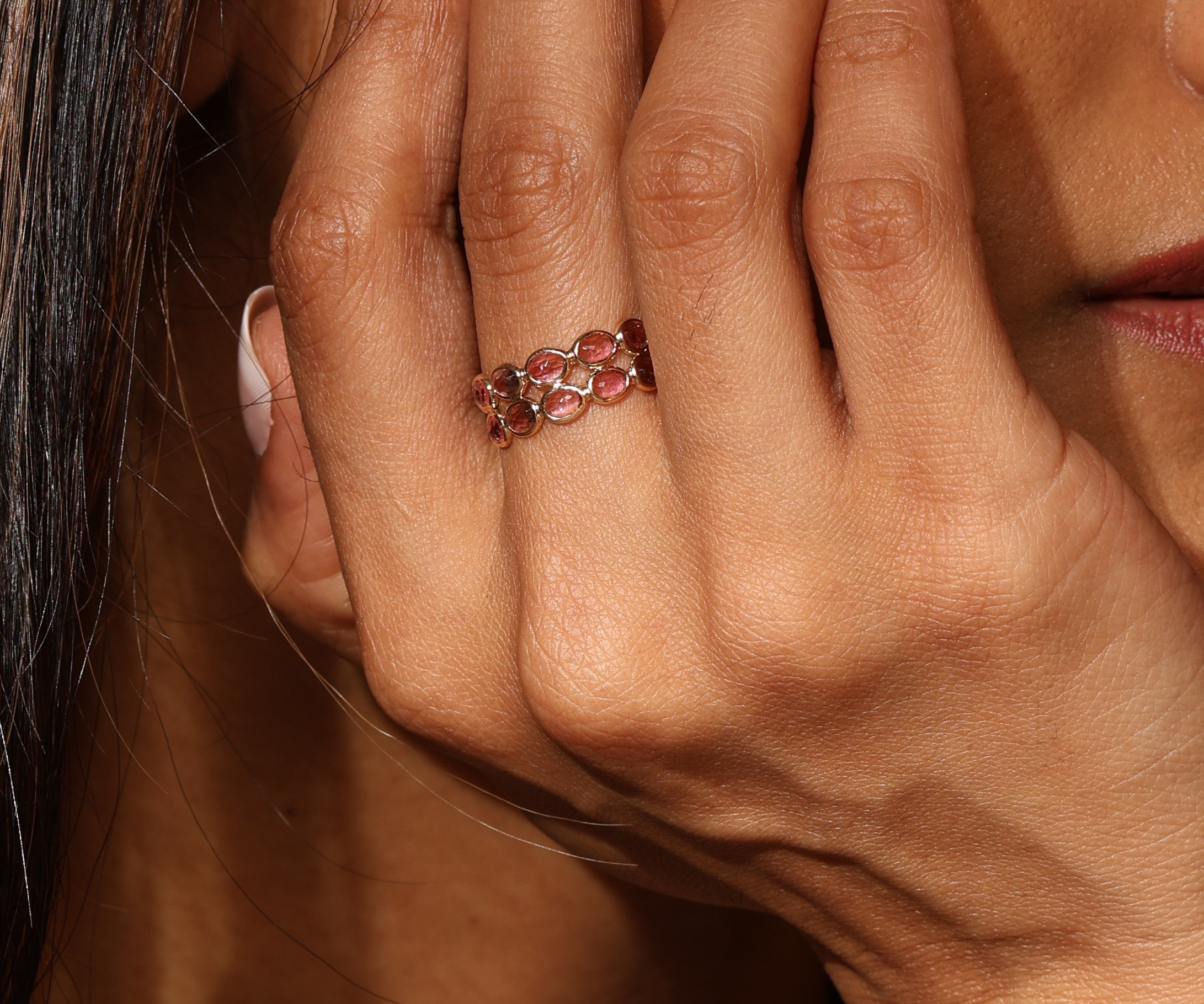 - Pink Tourmaline Double Band 14k Gold Ring – A chic, contemporary double band featuring vibrant pink tourmaline.