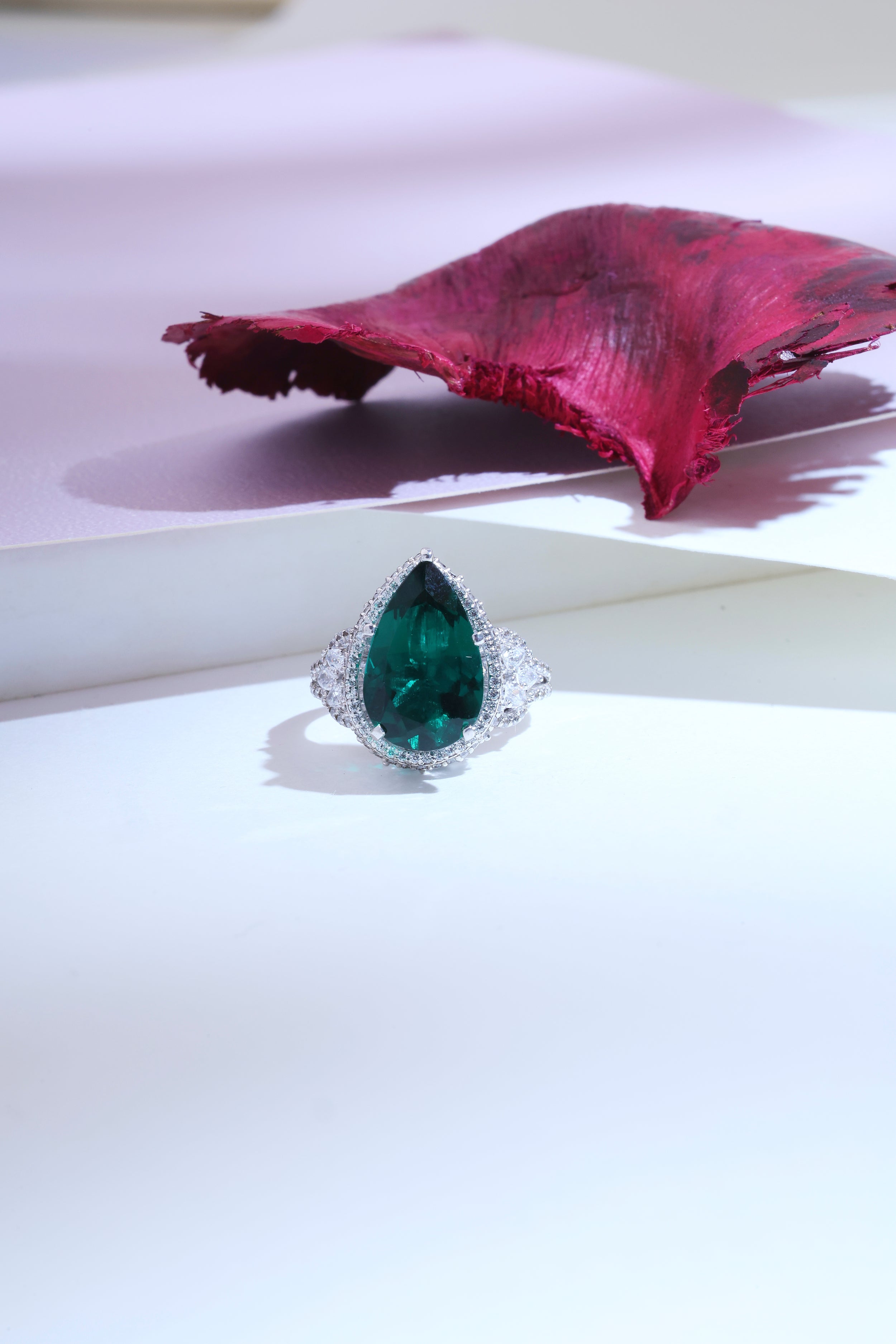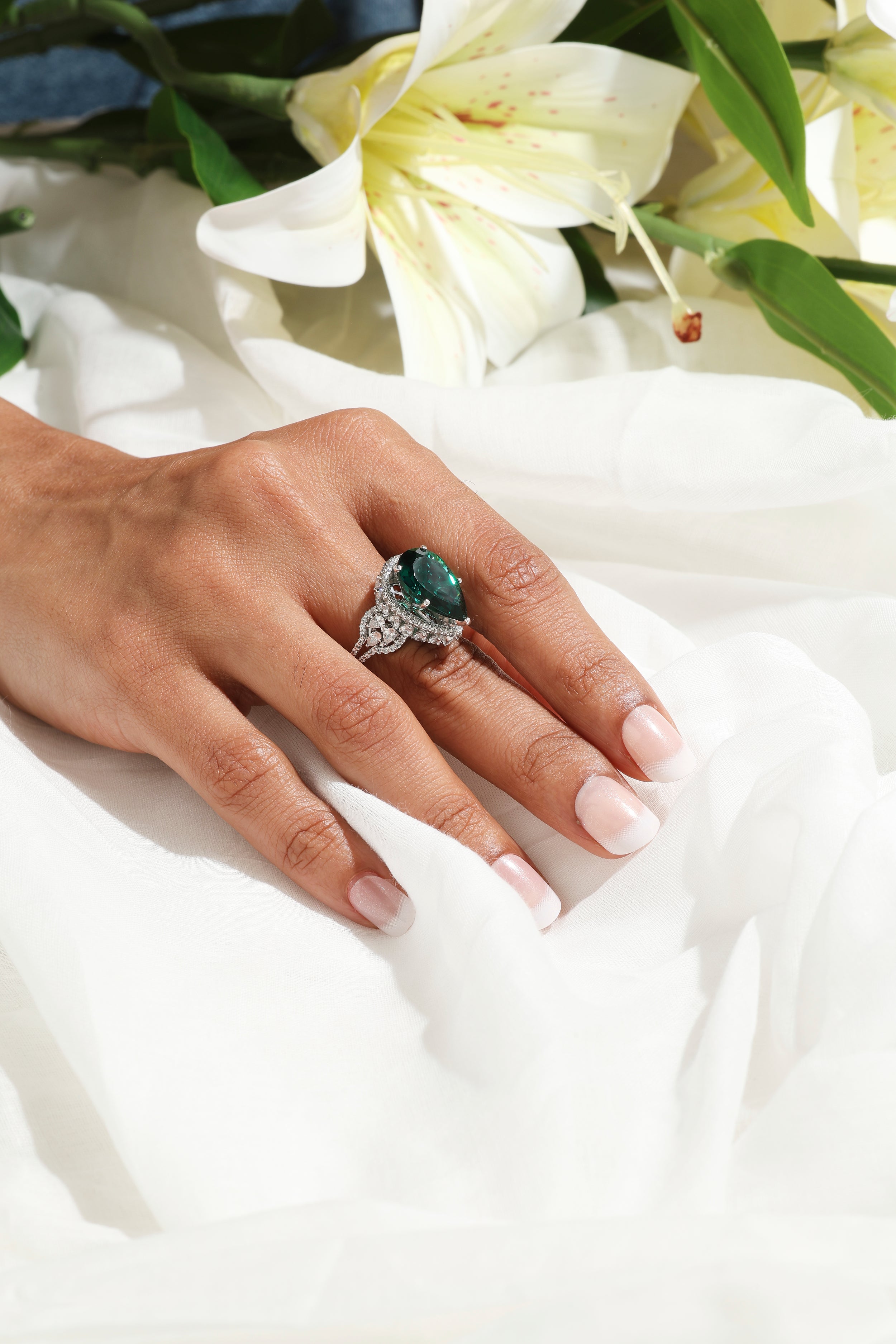 - Emerald and Diamond Cocktail Ring – A bold cocktail ring featuring a striking emerald and dazzling diamonds.