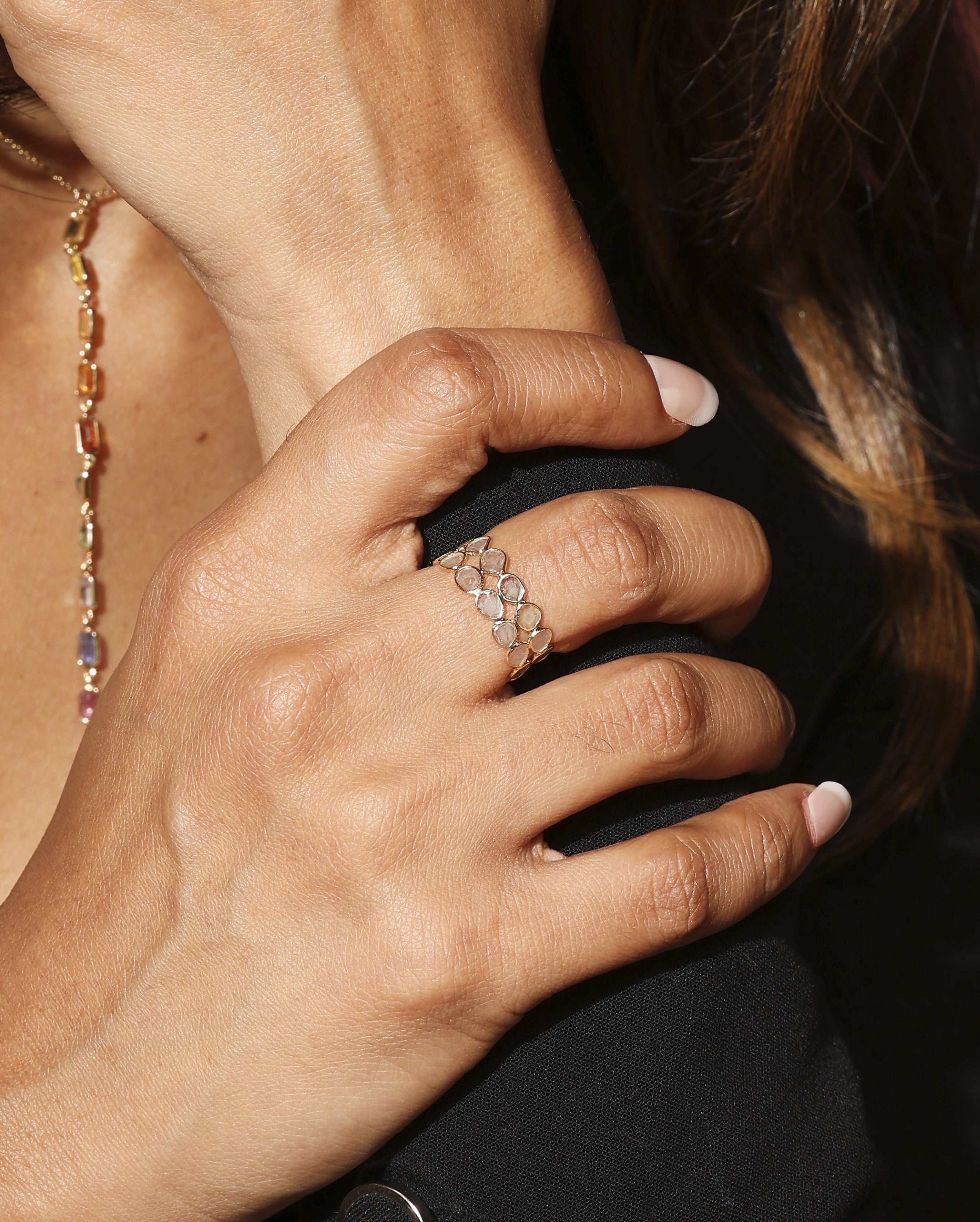 - Polki Diamond Double Band 14k Gold Ring – Vintage charm meets modern design with raw Polki diamonds.