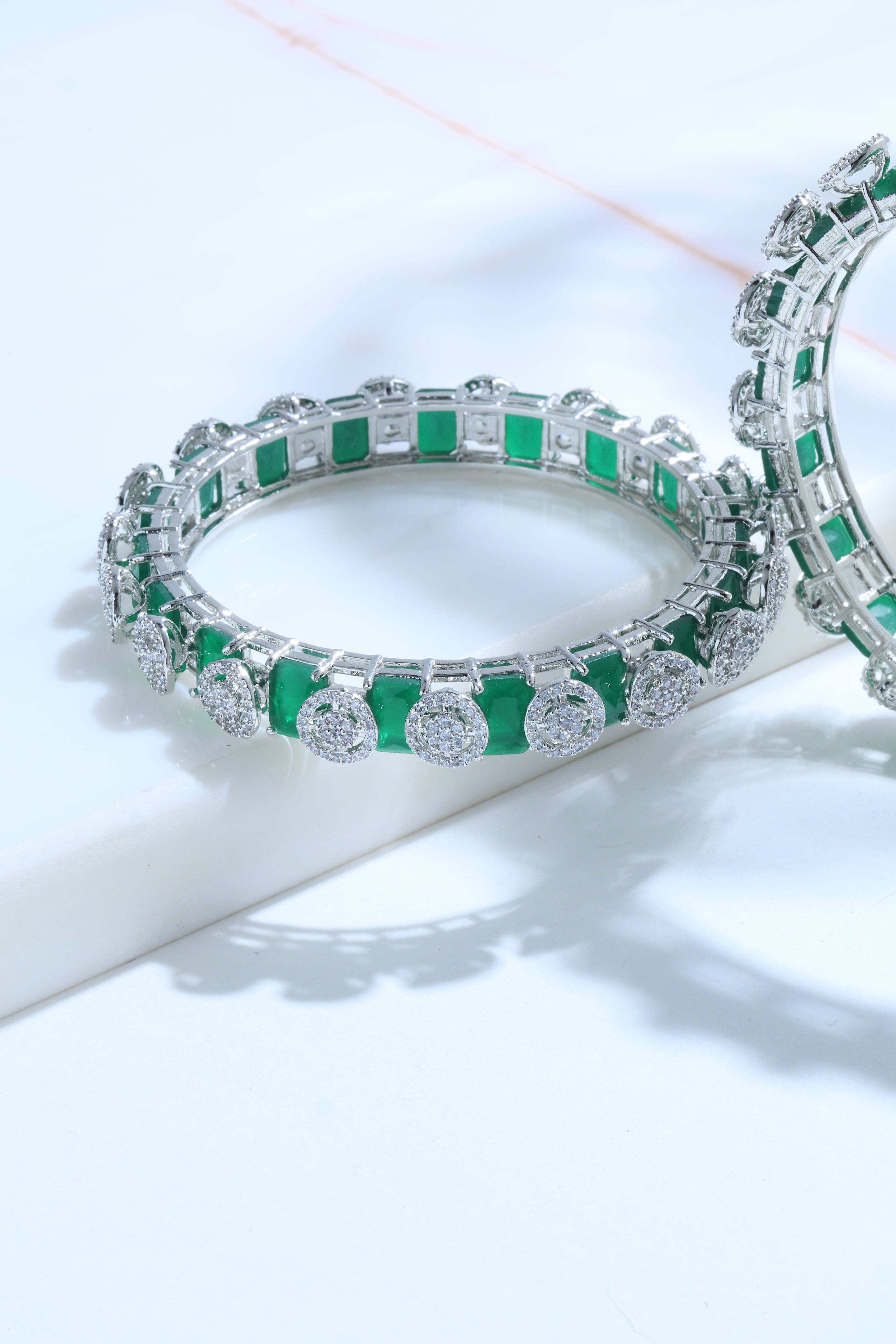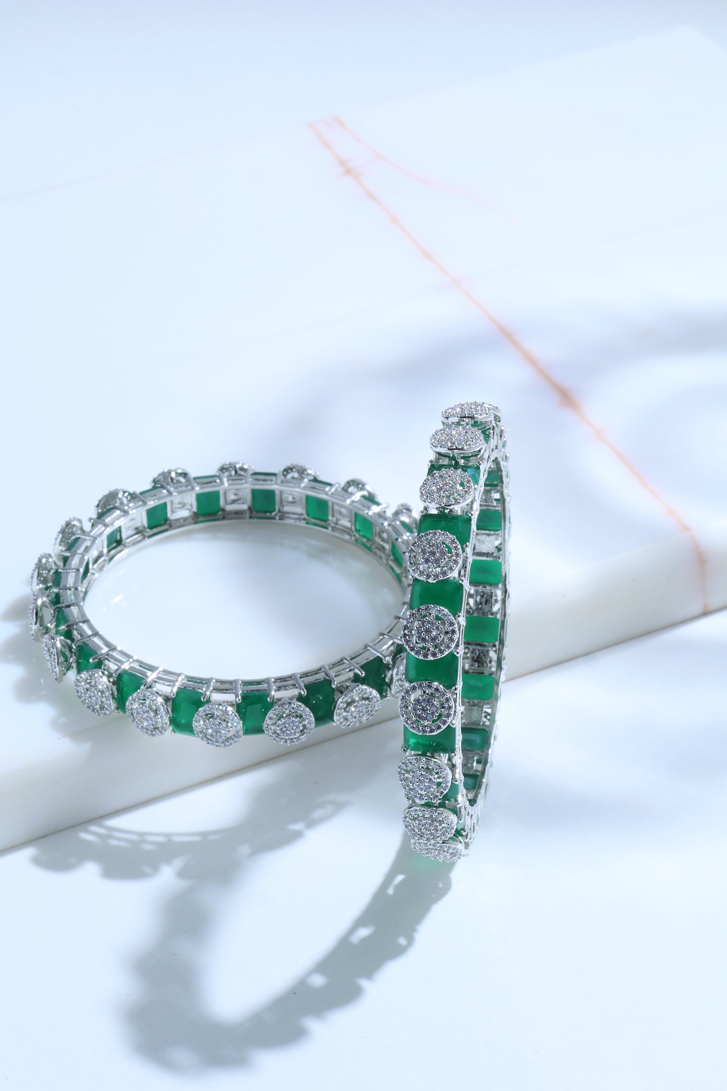 - Emerald and Diamond 14k Gold Bangles – A regal design featuring rich green emeralds paired with dazzling diamonds for a royal bridal look.