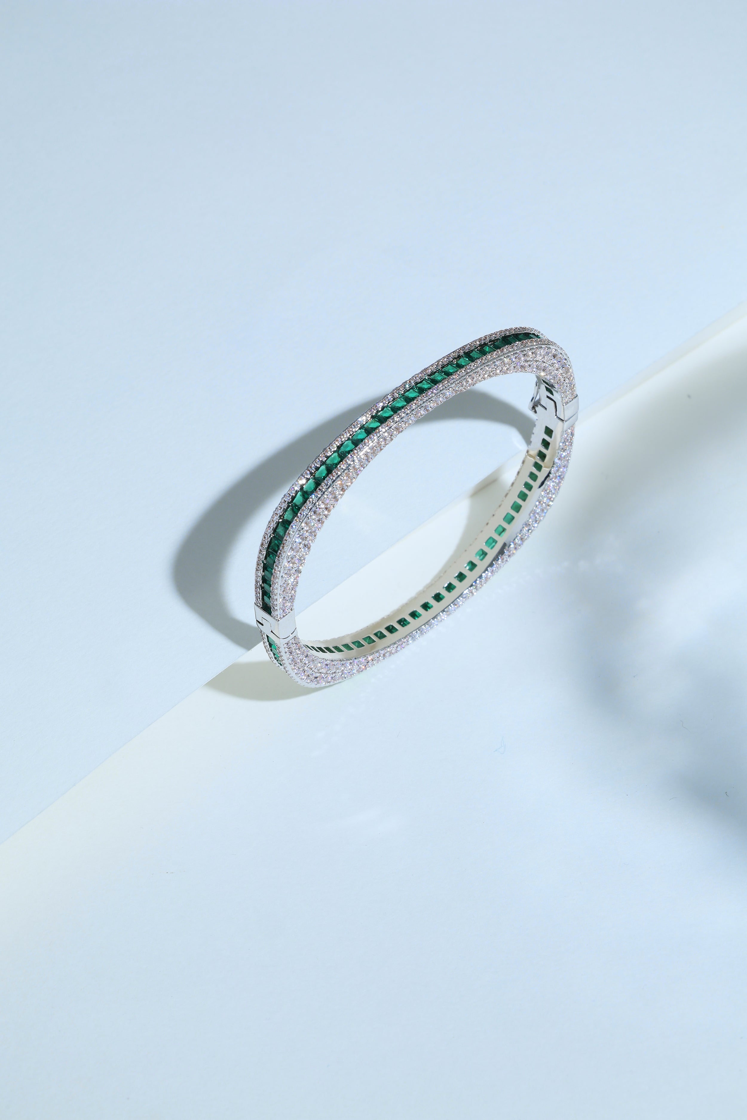 - Emerald and Diamond 14k Gold Bangle – A single-statement bangle with elegant green accents and a luxurious diamond finish.